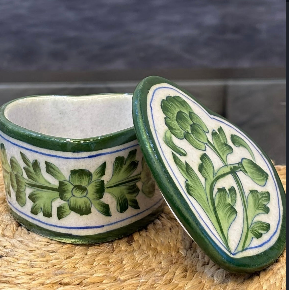 Celestial Bloom – Blue Pottery Heart Jewellery Box